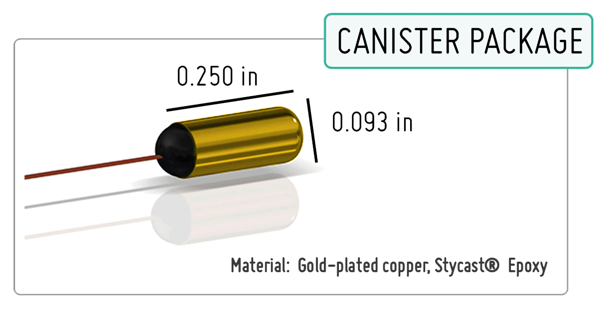 The Model RO-600 Ruthenium Oxide Temperature Sensors are thick film resistors which adhere to are available with calibration down to 20mK or grouped/interchangeable and have a nominal resistance of 1,000Ω at ambient temperature. The ruthenium oxide temperature sensor offers excellent performance characteristics in magnetic field environments. These sensors exhibit an initial small negative magnetoresistance at temperatures below 250 mK at low fields (less than about 1.5 Tesla). The magnetoresistance then becomes positive at larger fields and increases at lower temperatures. This magnetoresistance is repeatable. For example, a resistance change of 8% induced by an 8 Tesla field at a temperature of 80 mK corresponds to a temperature error of 7 mK.
