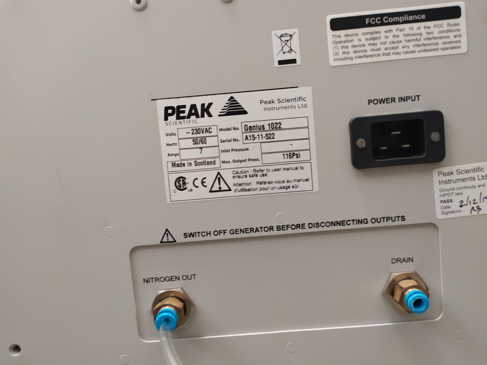 Peak Scientific Instruments Nitrogen Generator Genius 1022