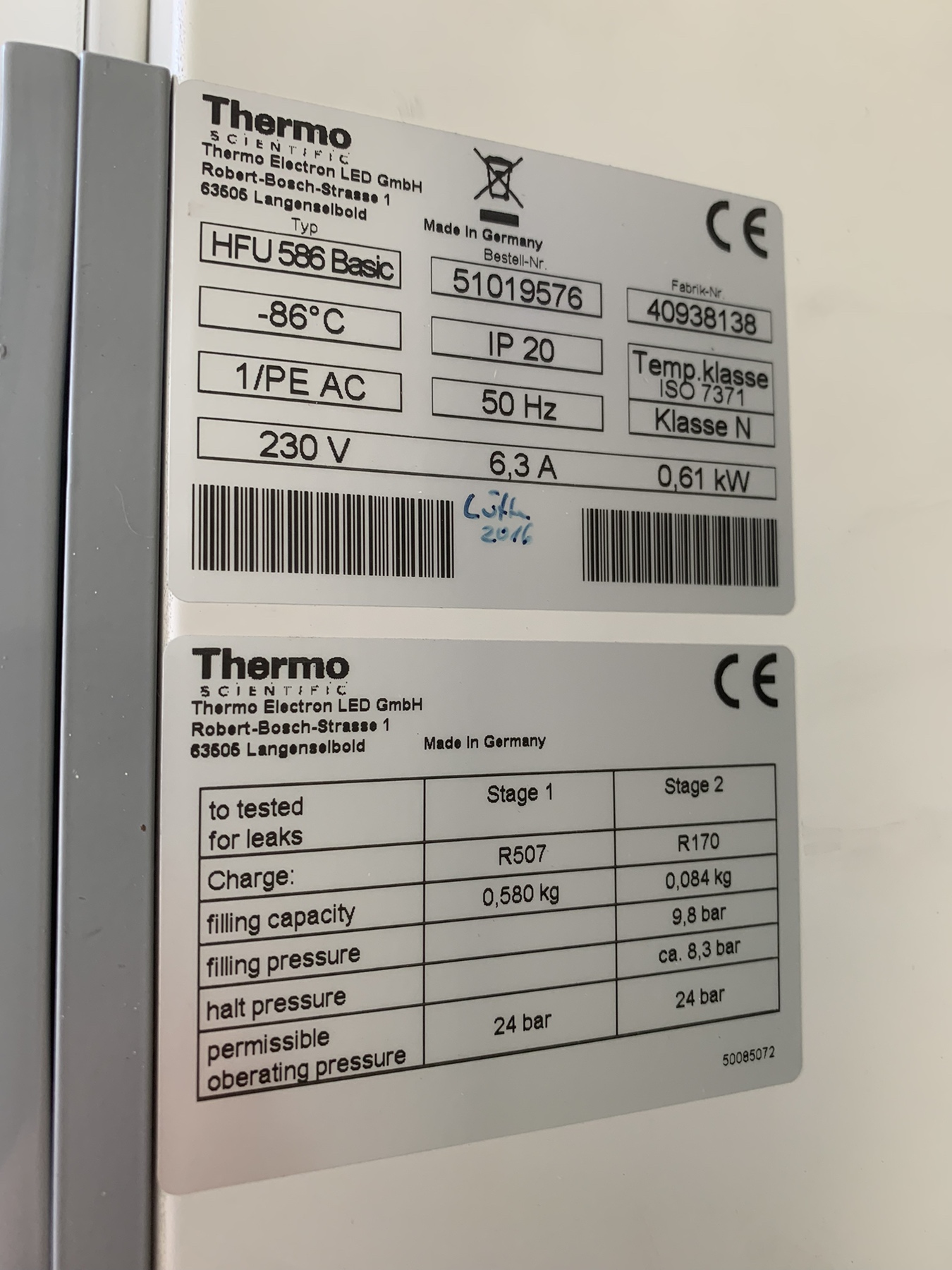 Thermo Scientific Ultra Freezer -86°C Model: HFU 586 Basic Upright, Refurbished including the racks.